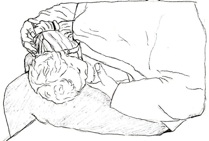 In this position, baby is placed on his side facing mother, as close as possible, across mother’s lap. Mother pulls him in close to her breast by pulling his back towards her.