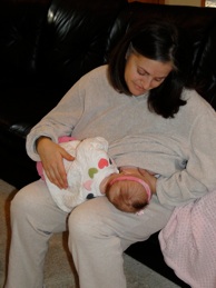In the lap nursing hold, baby is supported by mother’s lap. Since mother is not lifting baby with her hand, this breastfeeding position does not create the hand, wrist, and arm pain that the cross cradle hold causes.
